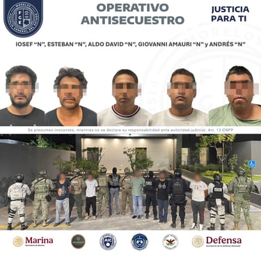 Autoridades estatales y federales de la Mesa de Coordinación Estatal para la Construcción de Paz y Seguridad rescataron a una mujer privada de su libertad, durante un operativo interinstitucional de combate al secuestro, en donde detuvieron a cinco presuntos integrantes de una célula delictiva.